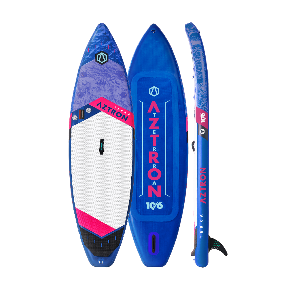 The TERRA 10’6″ board is one of the touring air boards designed for lighter riders who prefers long-distance cruise paddling.The narrow shape makes it easier to control and remains responsive and nimble. The Double Layer Fusion Technology not only reduces the weight but also increases the rigidity and overall strength of the board.