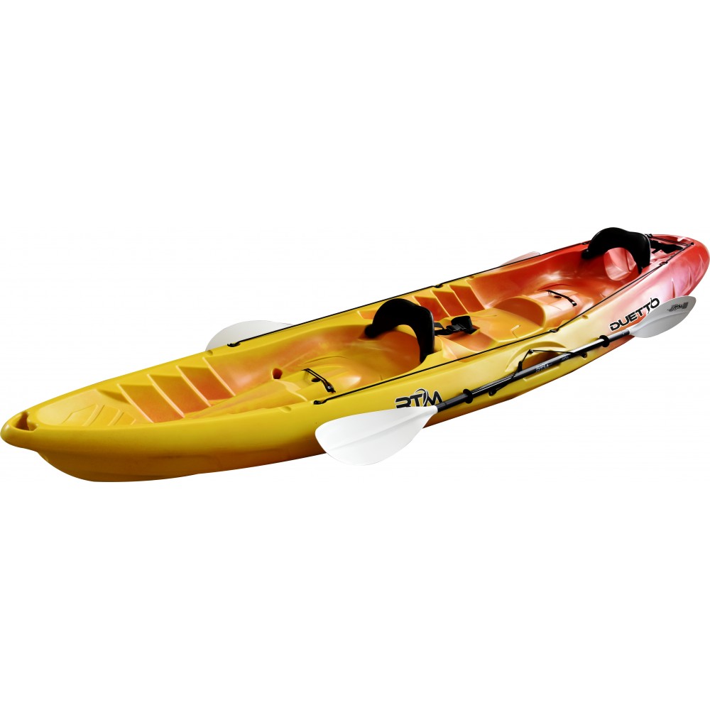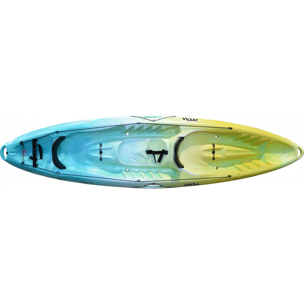 Dvivietė SIT-ON-TOP tipo baidarė su vaikiška sėdyne puikiai tinka pramogai ir turizmui. Itin stabili.