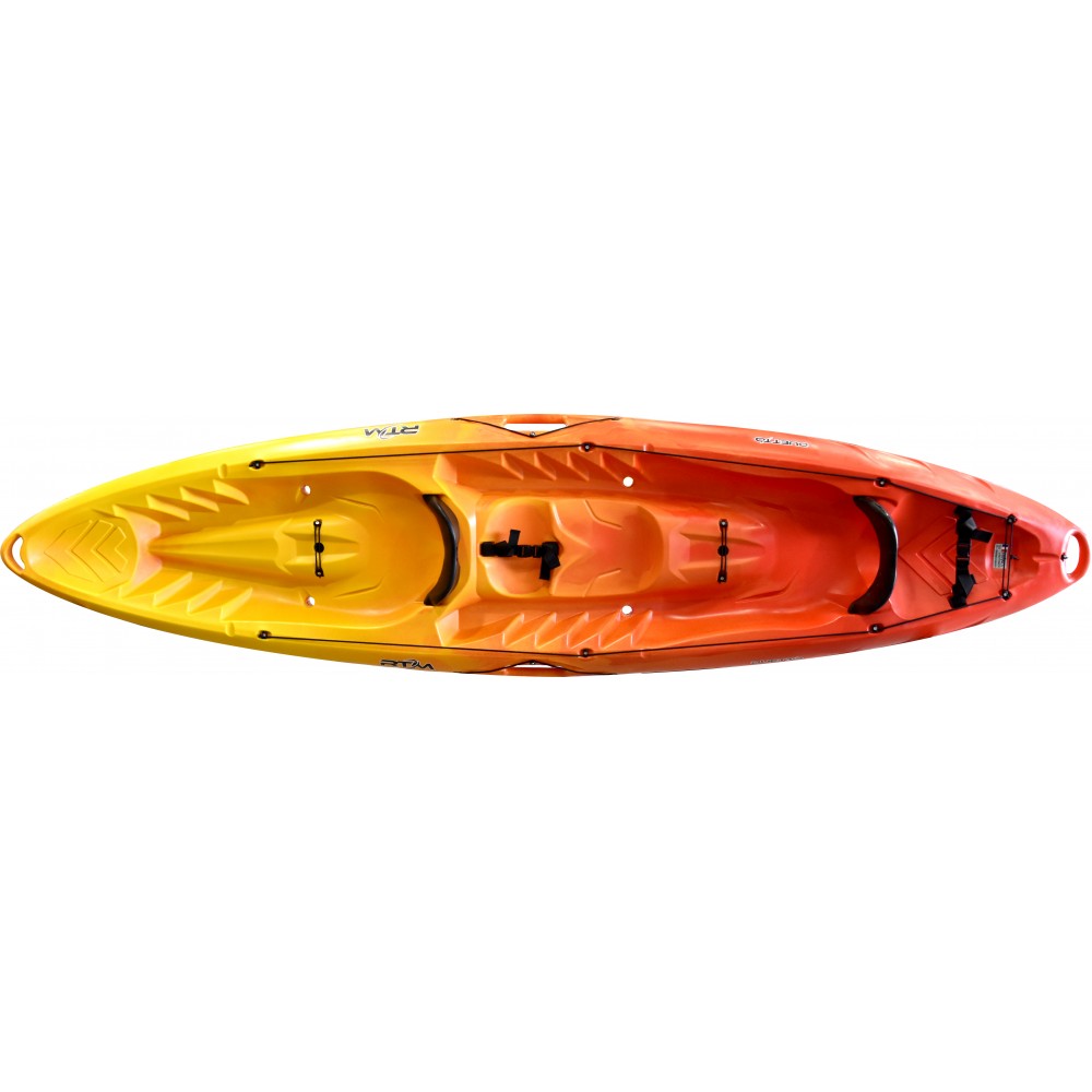 SIT-ON-TOP tipo baidarė pramogai ir turizmui. Itin stabili. Galimybė papildomai sodinti vą, taip praplečiant iki 3 keleivių. Tvirtinimai hermetiškiems bidonams, patogios rankenos, atlošai nugarai, patogios kojų atramos.