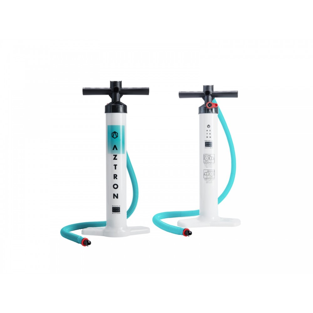Naujoji Aztron Double Action rankinė pompa pripučia jūsų irklentę greičiau ir lengviau, užtikrindama nuolatinį pompavimo ciklą tiek stumiant žemyn, tiek traukiant aukštyn. Su paprastu jungikliu lengvai perjungsite į vienos eigos režimą, kad galėtumėte patogiai užbaigti pripūtimą paskutiniais keliais pompos paspaudimais.